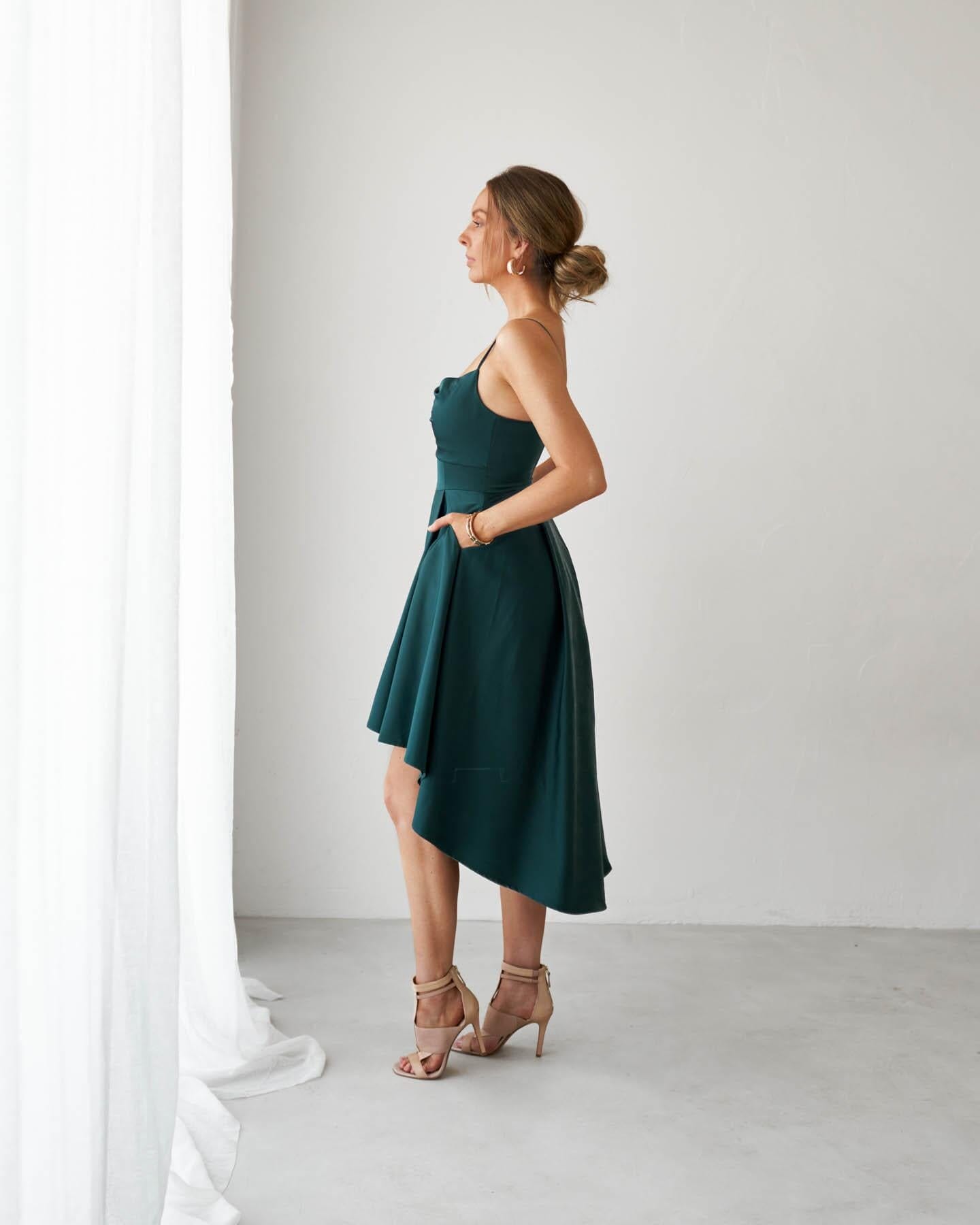 A perfect bridesmaid dress featuring a high-low hemline, soft fabric, and beautiful cowl neckline, exuding contemporary elegance and captivating style. The Marie Dress is not limited to weddings alone. Its versatile design and contemporary features make it a fantastic choice for a variety of special occasions, such as proms or formal events. Did we mentioned that it also comes with two functional pockets?