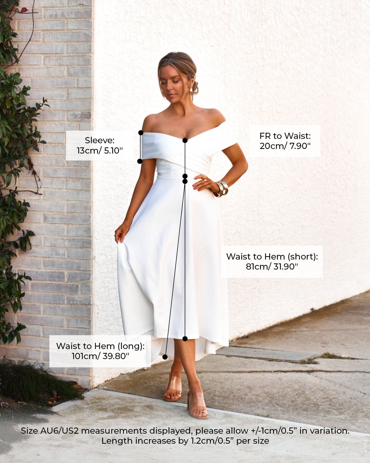 The Belina Dress is not simply a dress - it is an embodiment of exquisite sophistication. Its off-shoulder design drapes delicately over your collarbones, promising to entice and mesmerize all those who catch a glimpse. The A-line skirt, flowing effortlessly from the waist, bestows a sense of grace and poise upon your every movement.