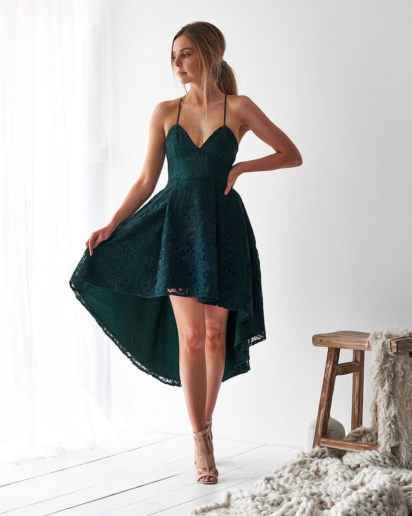 Featuring a fitted sweetheart bodice, slim straps and a full high-low skirt. Paired with your favourite accessories, it’s the perfect staple for any formal event.
