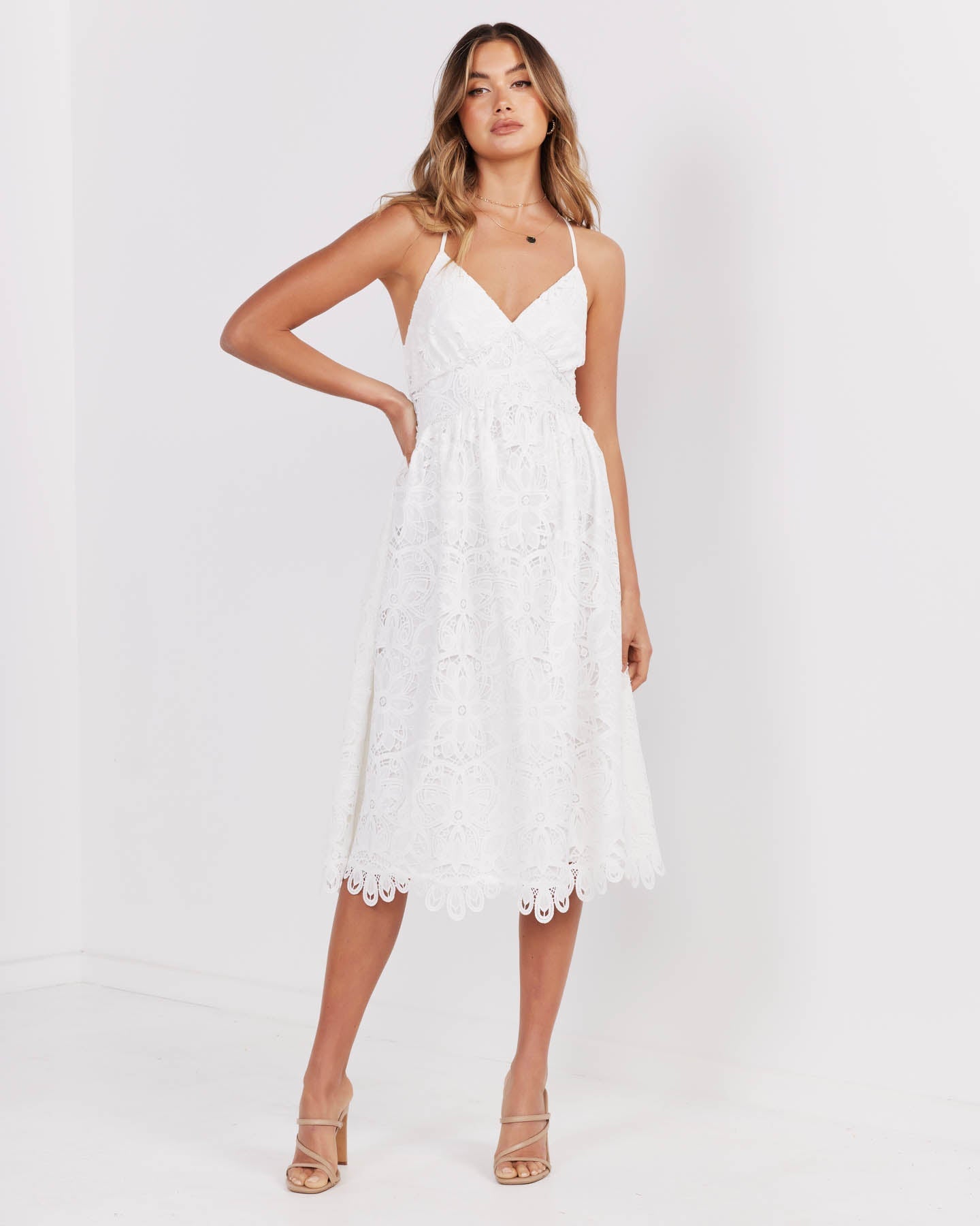 This tasteful creation flaunts our signature lace design with minimal cross-back. This dress is perfect for a baby shower, housewarming party, a birthday celebration and similar festivities!