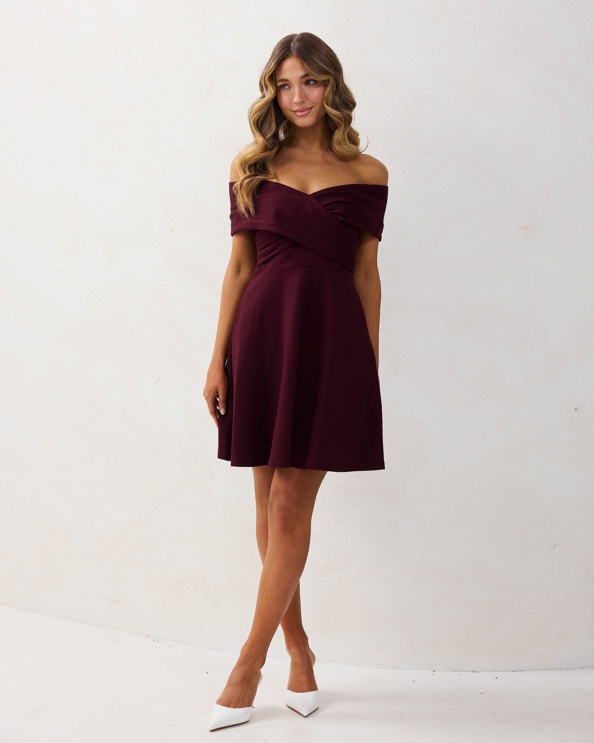 The Britt Dress is not simply a dress - it is an embodiment of exquisite sophistication. Its off-shoulder design drapes delicately over your collarbones, promising to entice and mesmerize all those who catch a glimpse. The A-line skirt, flowing effortlessly from the waist, bestows a sense of grace and poise upon your every movement.